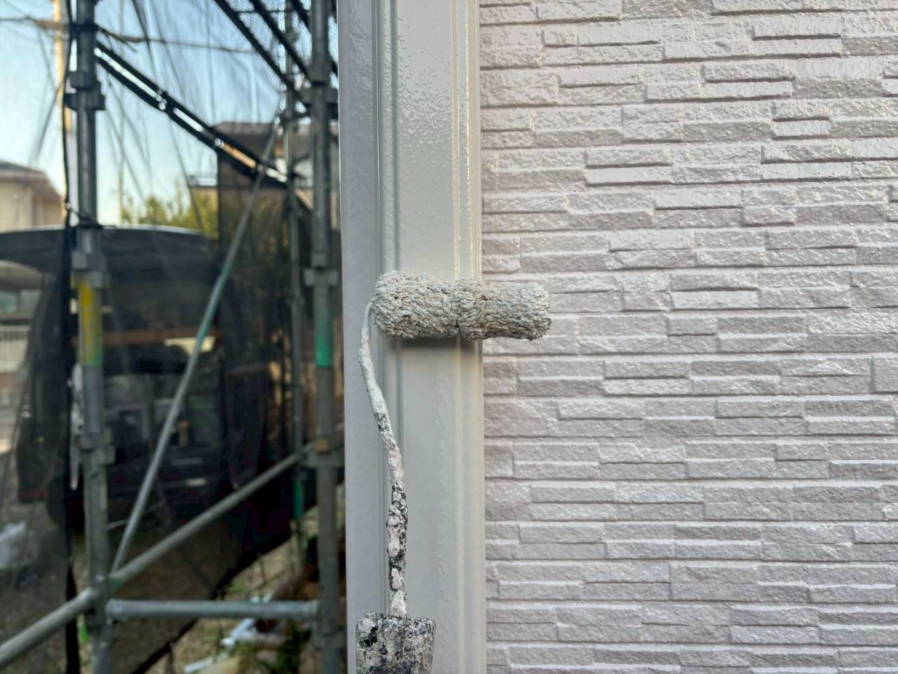 安全で高品質な施工を行うためには、足場や事前準備が欠かせません。須貝美装では、作業効率だけでなく安全面にも細かく配慮しながら現場を整えています。写真に写るのは、工事が始まる前の大切な工程。見えない部分まで手を抜かない姿勢が、最終的な仕上がりにつながっています。